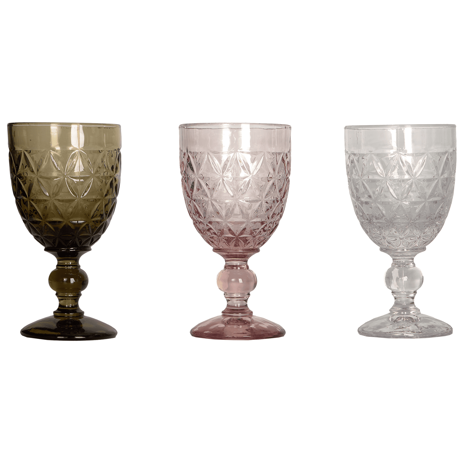 Bicchiere a coppa disponibile in tre colori: caramello, rosa e trasparente. Ideale per mise en place originali durante eventi e cerimonie.
