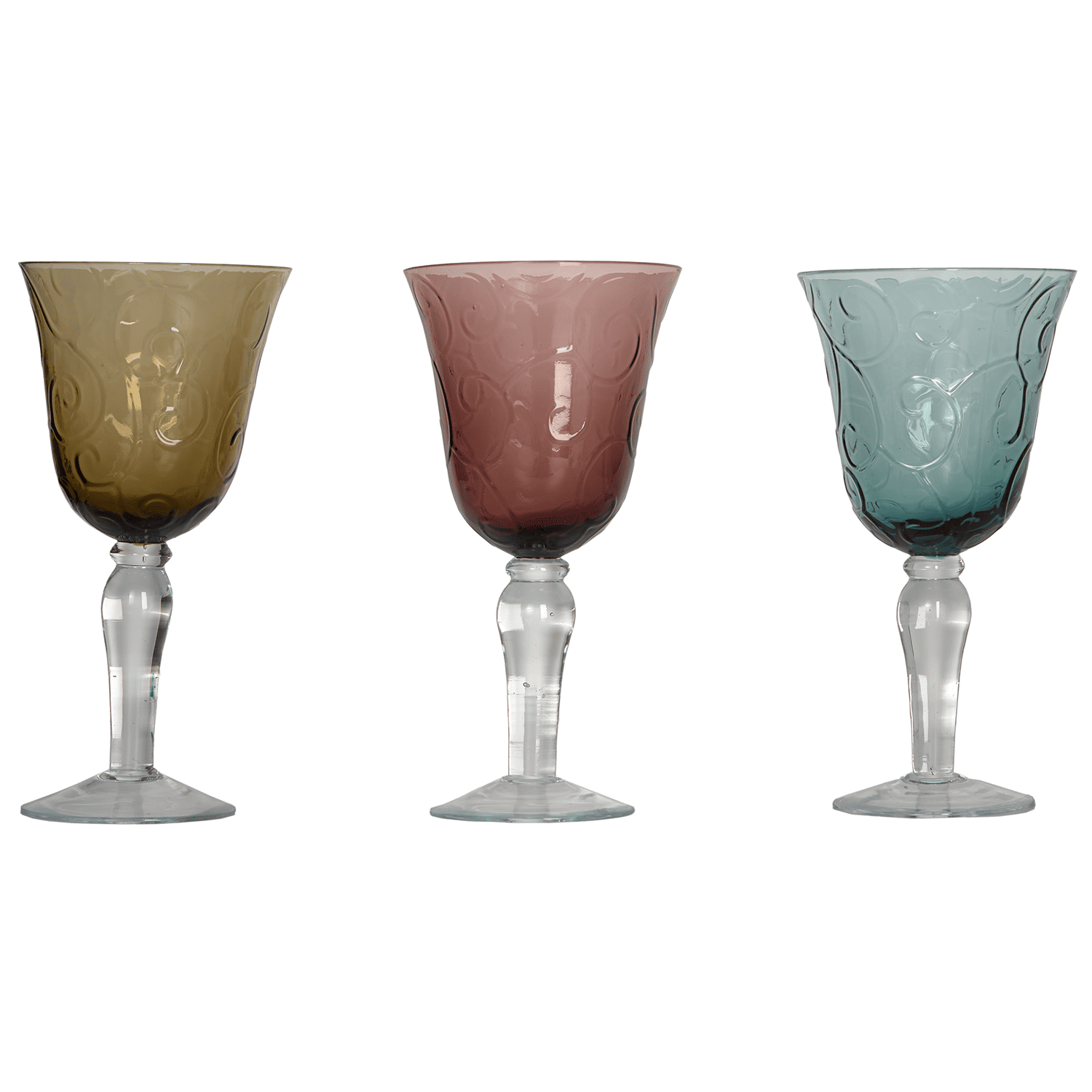 Bicchieri da acqua Vetro Shop disponibili in tre colori: azzurro, rosa e caramello. Ideali per tavole creative e allestimenti colorati durante eventi e cerimonie.