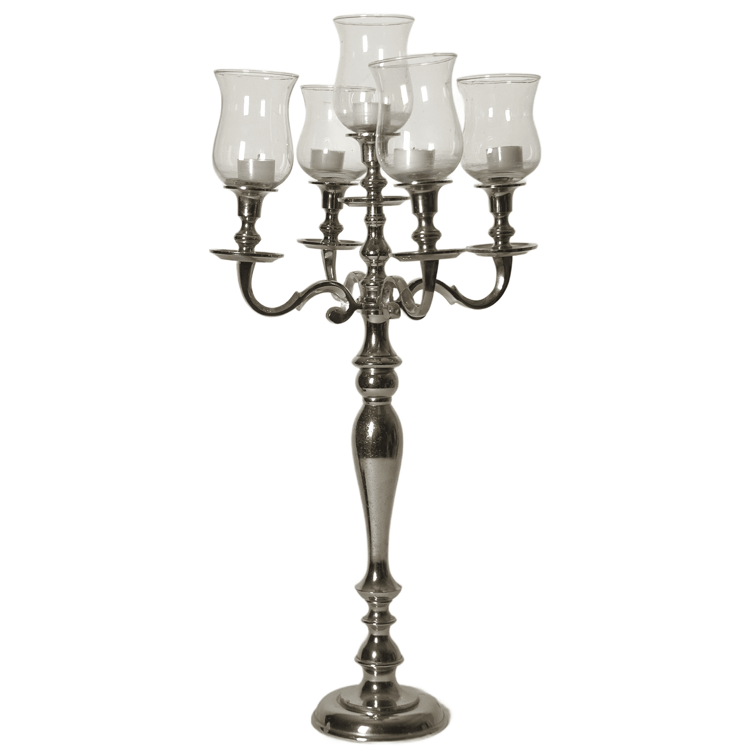 Candelabro in finitura argento, altezza 55 cm. Un elemento elegante per mise en place raffinate e decorazioni scenografiche durante eventi e cerimonie.