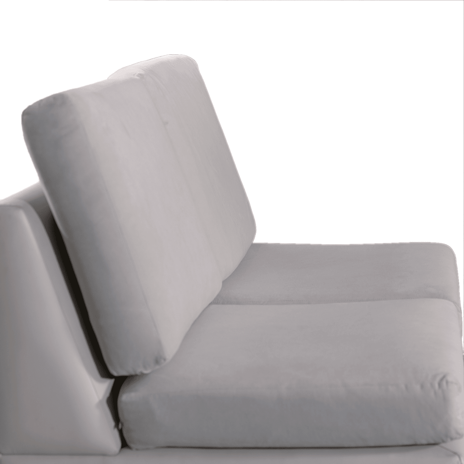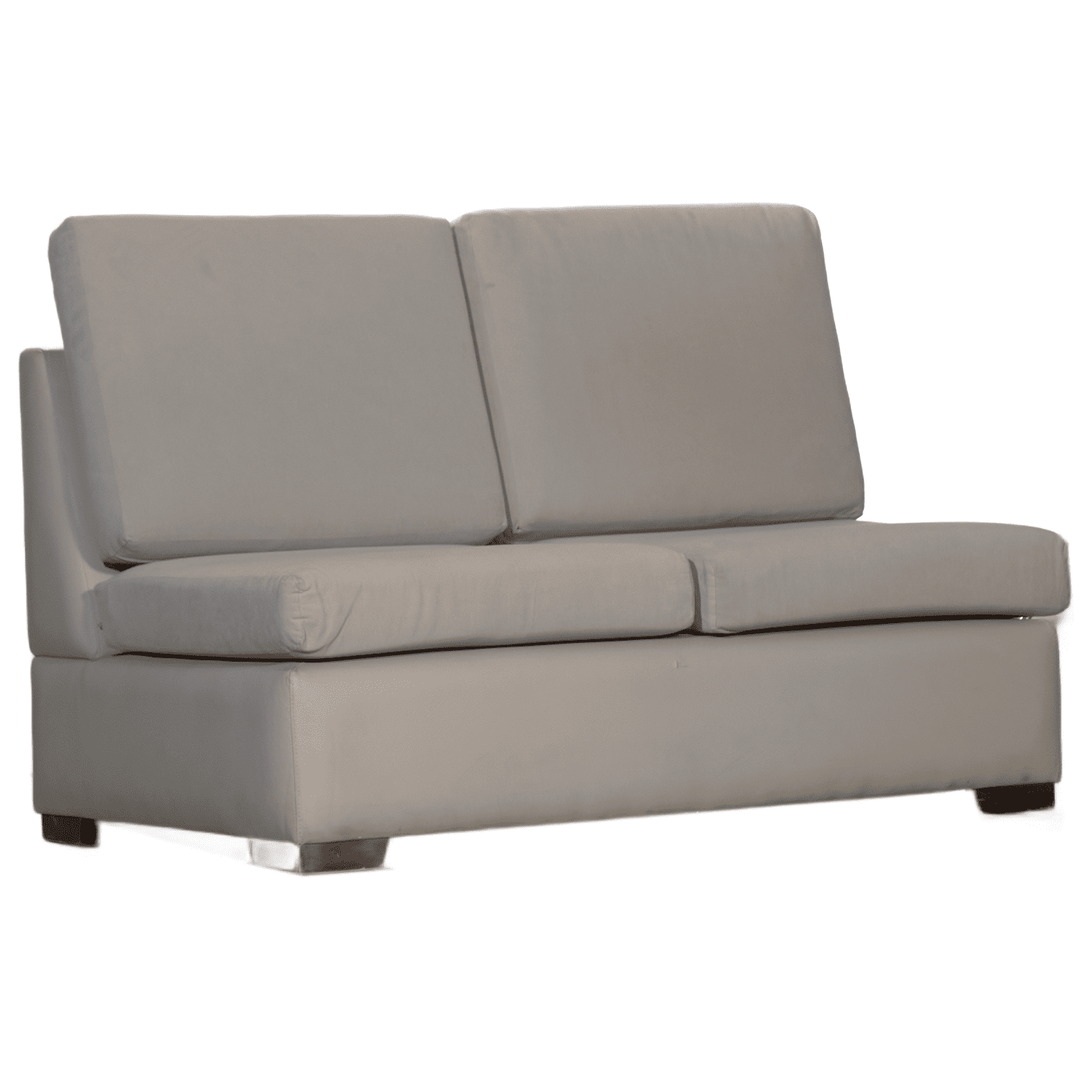 Divano lineare a due posti color tortora. Ideale per allestimenti eleganti, cerimonie e zone lounge.
