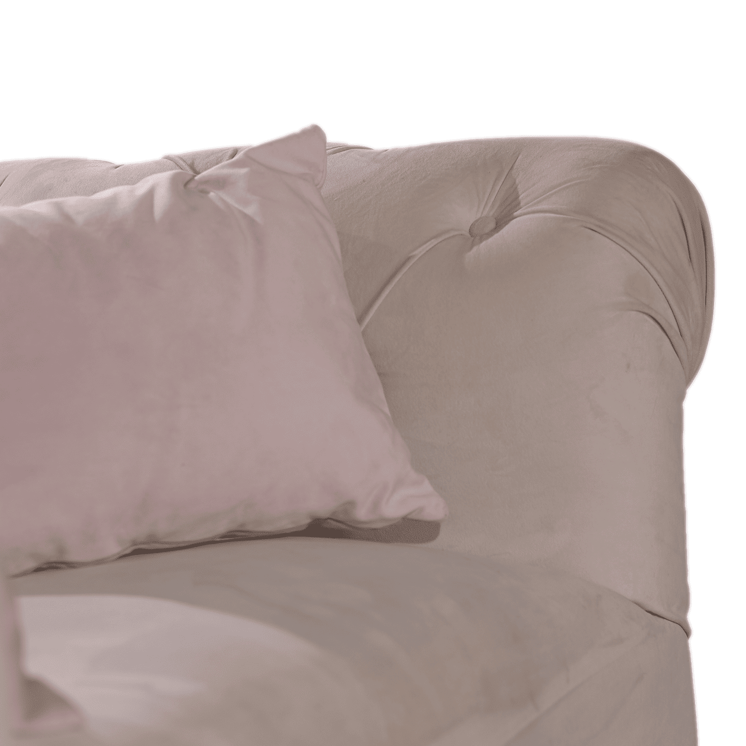 Divano a due posti in velluto panna, modello elegant. Disponibile anche nella versione a 3 posti.