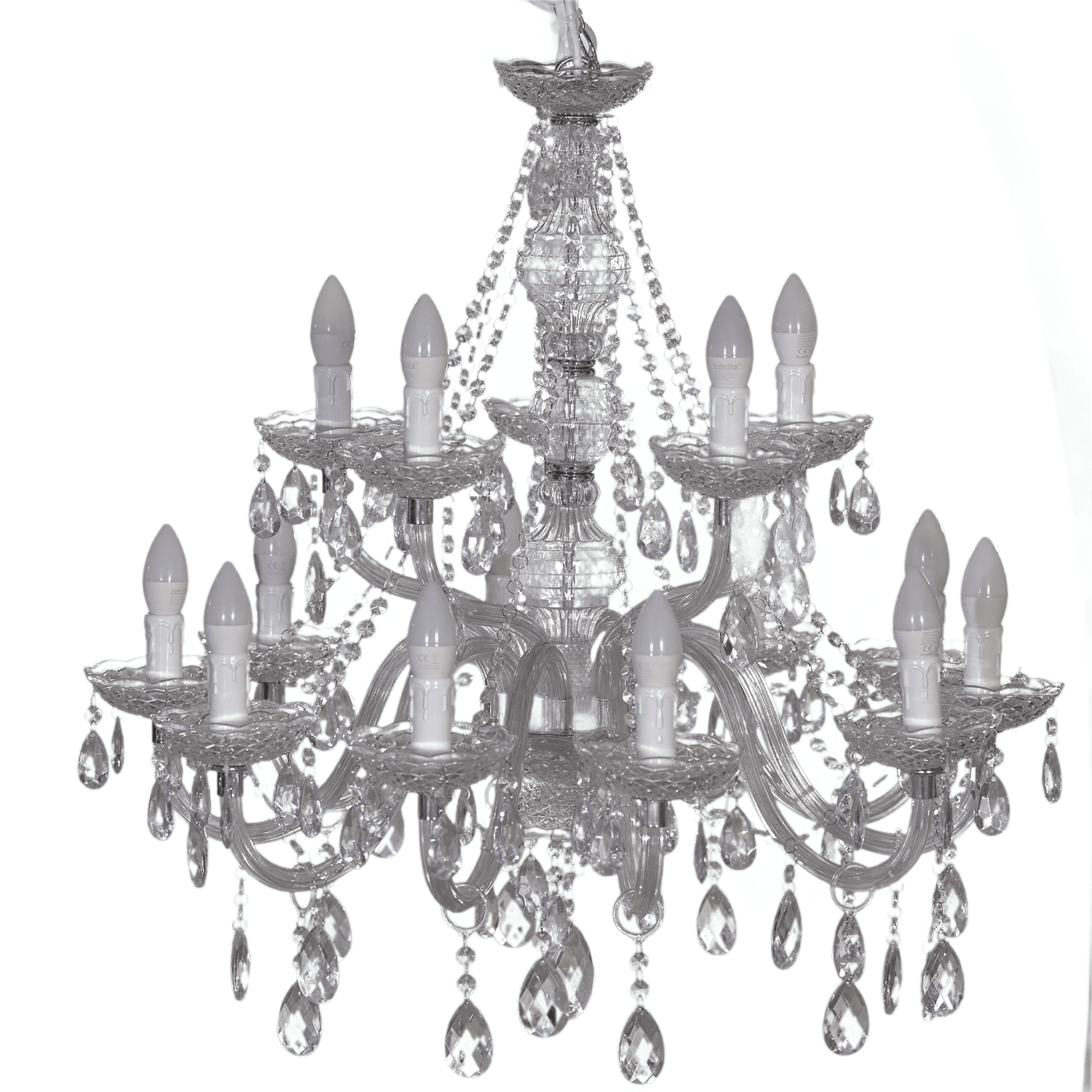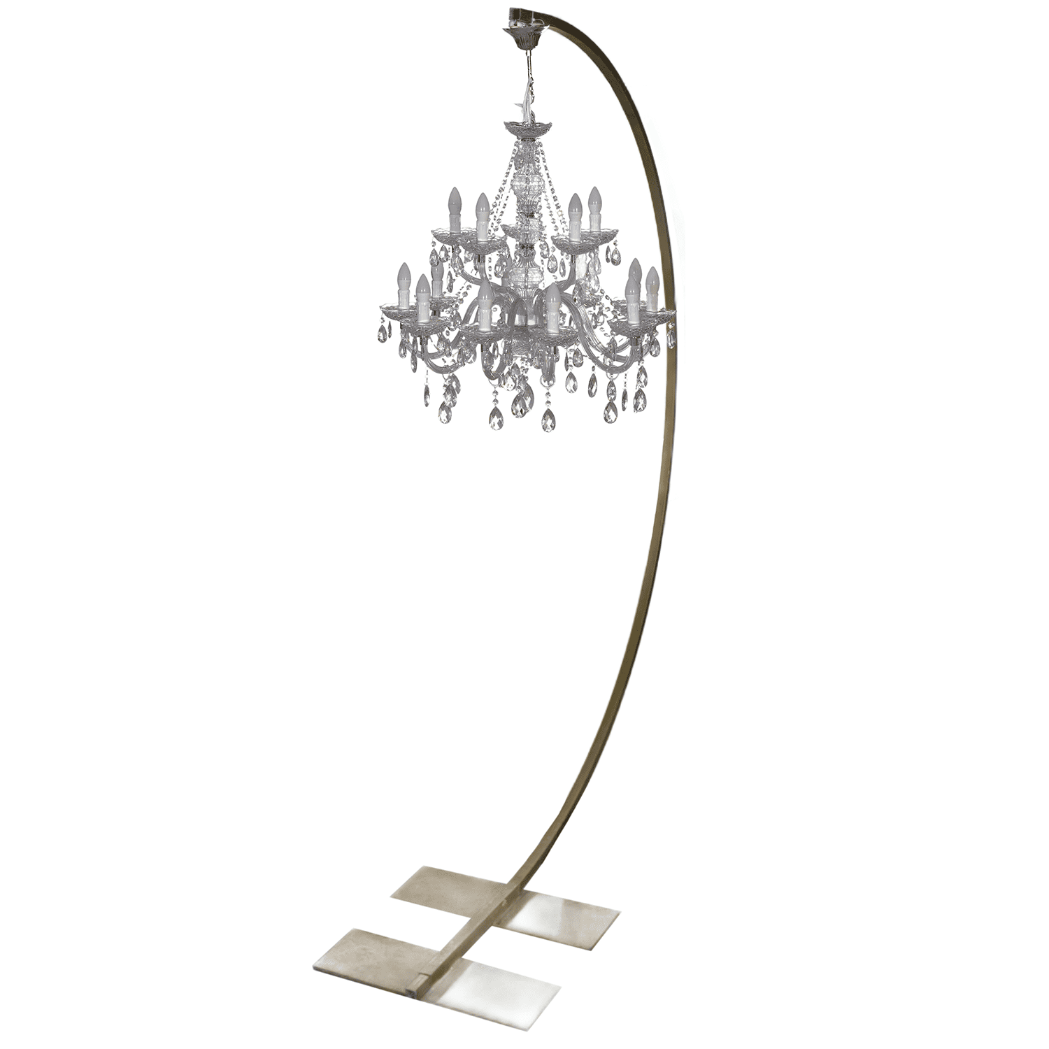 Lampadario decorativo modello classico, autoreggente su asta in finitura oro, con autonomia a batteria. Un elemento scenografico perfetto per creare punti luce eleganti durante eventi e cerimonie.