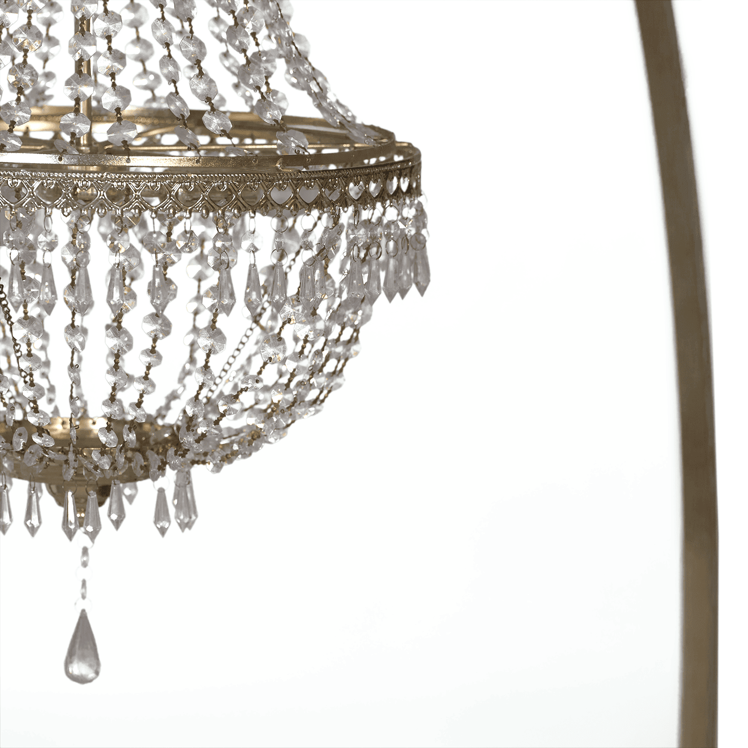 Lampadario decorativo modello Impero, autoreggente su asta in finitura oro con autonomia a batteria. Ideale per allestimenti eleganti e scenografici durante eventi e cerimonie, sia in ambienti interni che esterni.