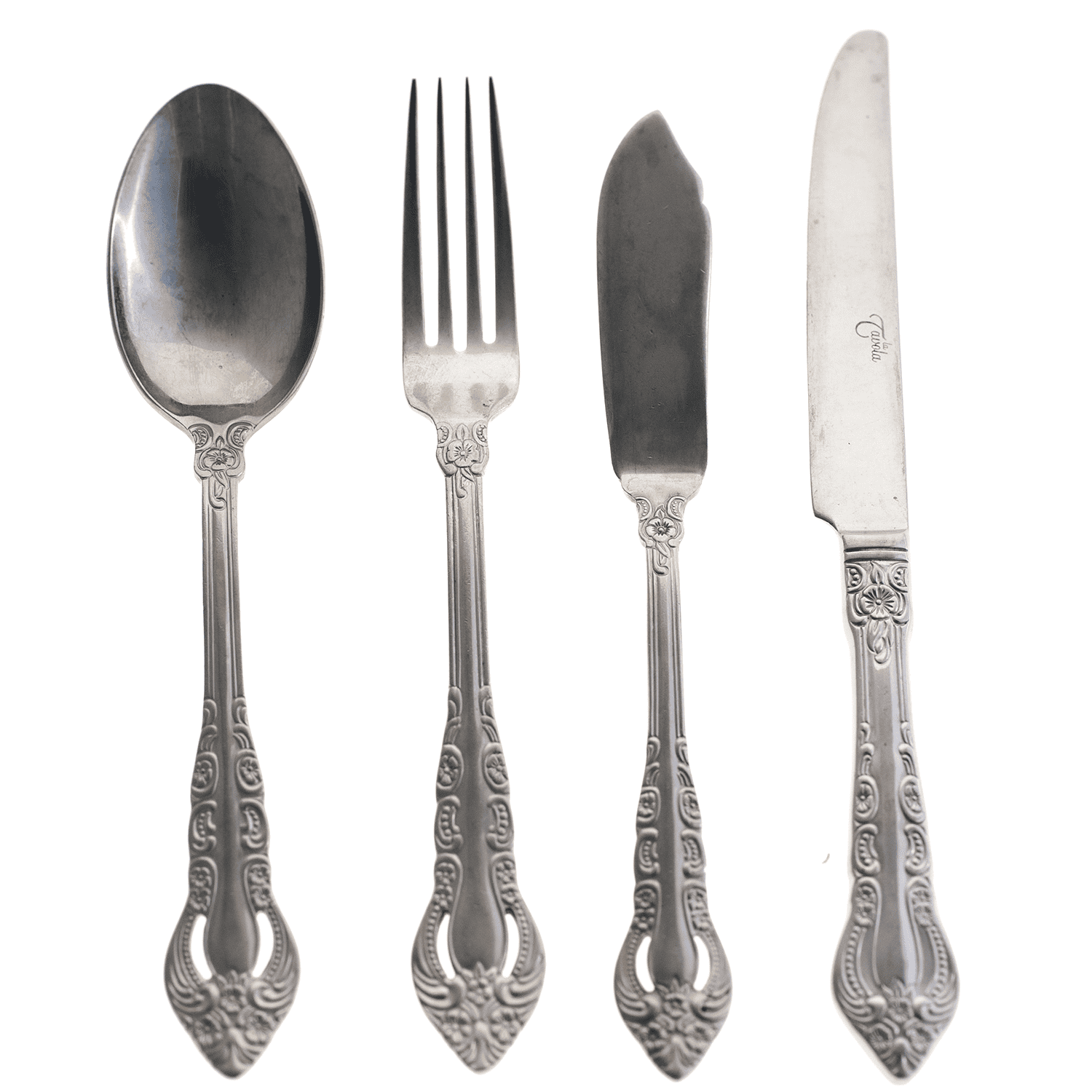 Posata in stile barocco con dettagli decorativi. Perfetta per mise en place scenografiche durante eventi eleganti e cerimonie.
