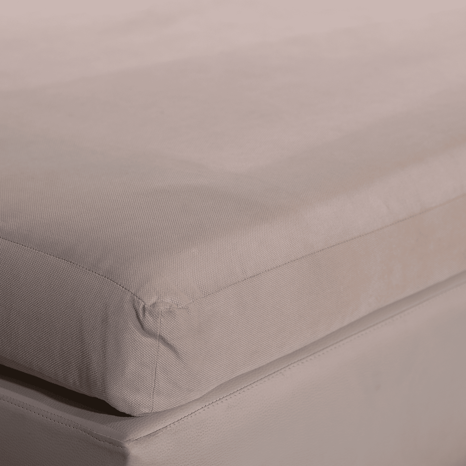 Pouf rettangolare color tortora. Ideale come elemento d’appoggio o seduta aggiuntiva per eventi e cerimonie.