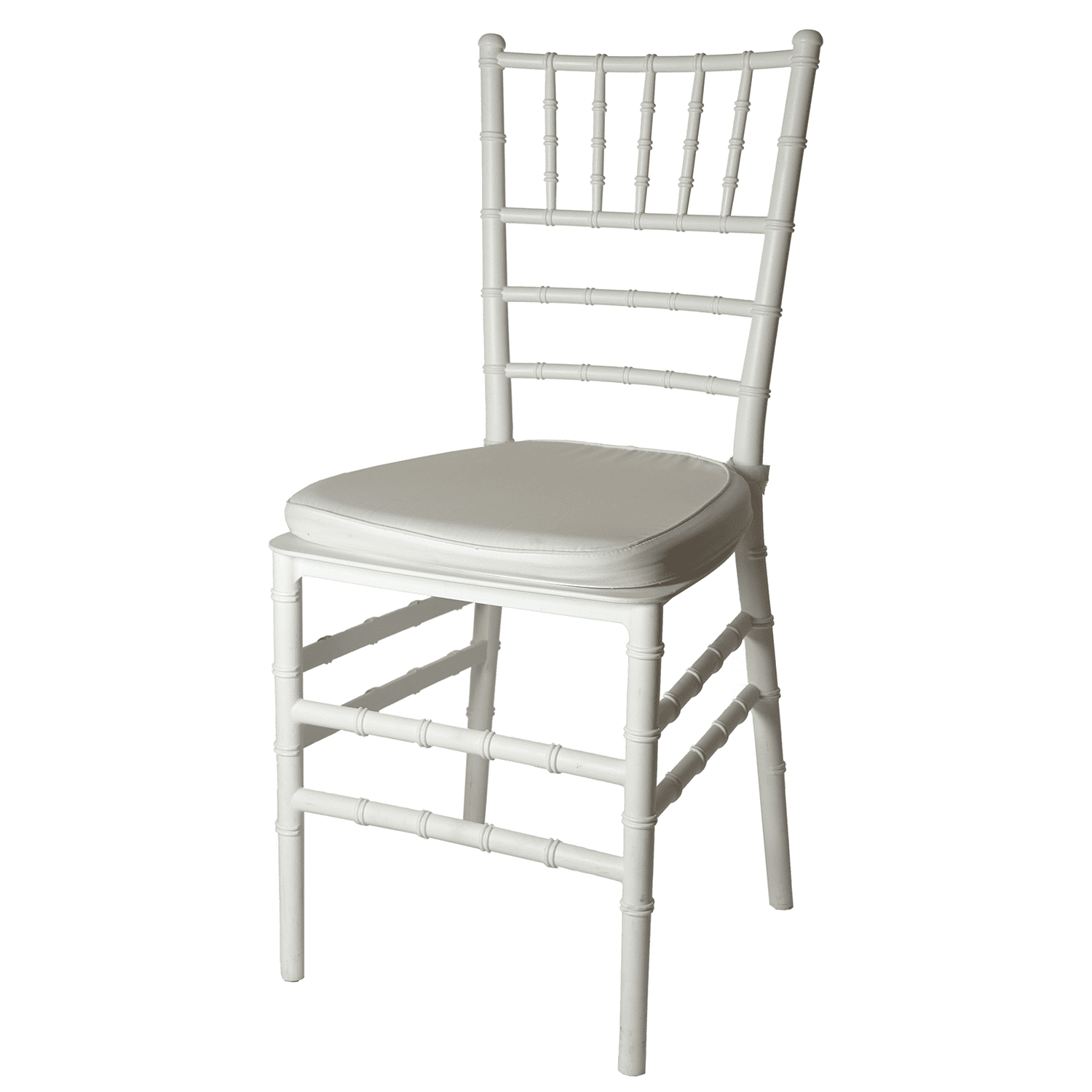 Sedia Chiavarina bianca con cuscino coordinato. Perfetta per cerimonie ed eventi eleganti grazie alla sua linea classica e raffinata.