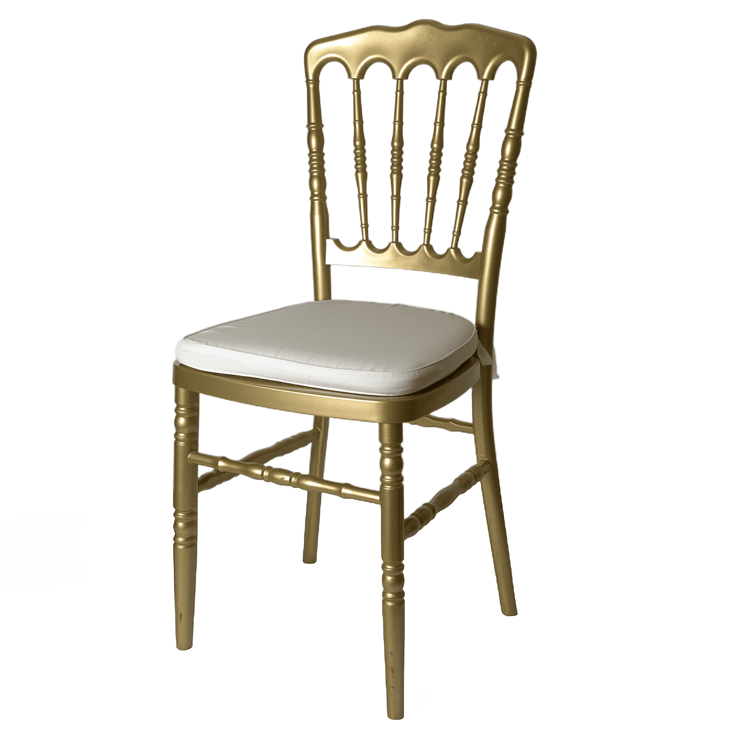 Sedia modello Parigina con finitura oro. Un tocco elegante e ricercato per eventi raffinati, cerimonie e mise en place scenografiche.