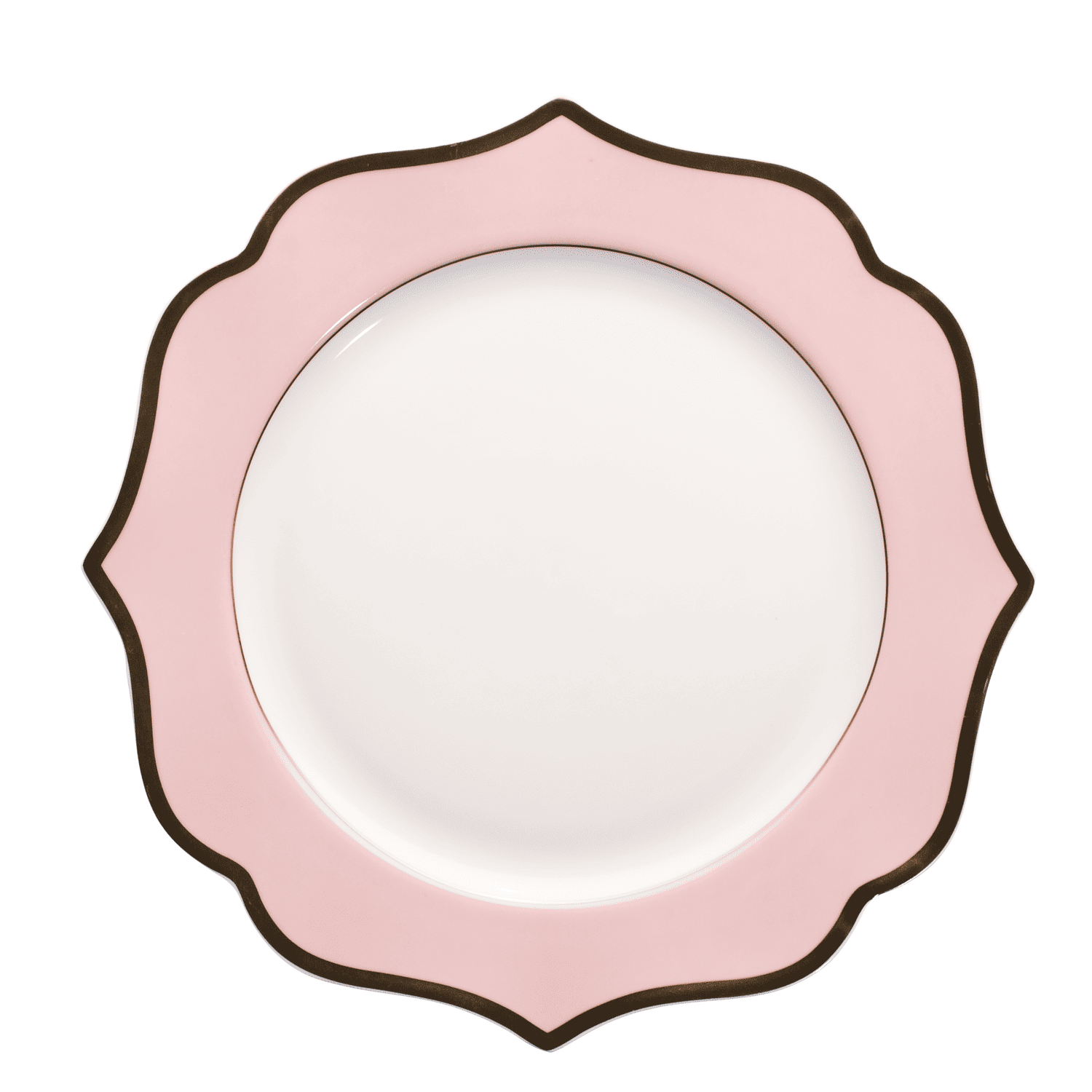 Sottopiatto della linea Le Coq in finitura rosa con filo oro. Perfetto per mise en place romantiche e ricercate durante eventi e cerimonie eleganti.