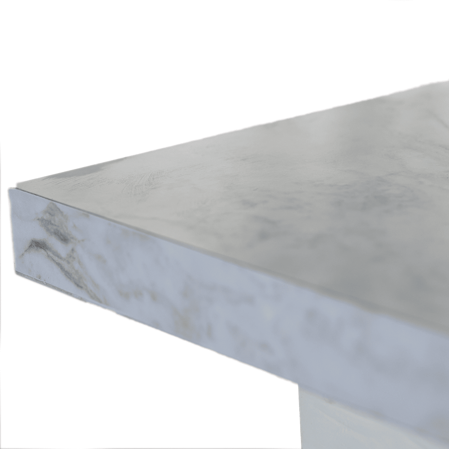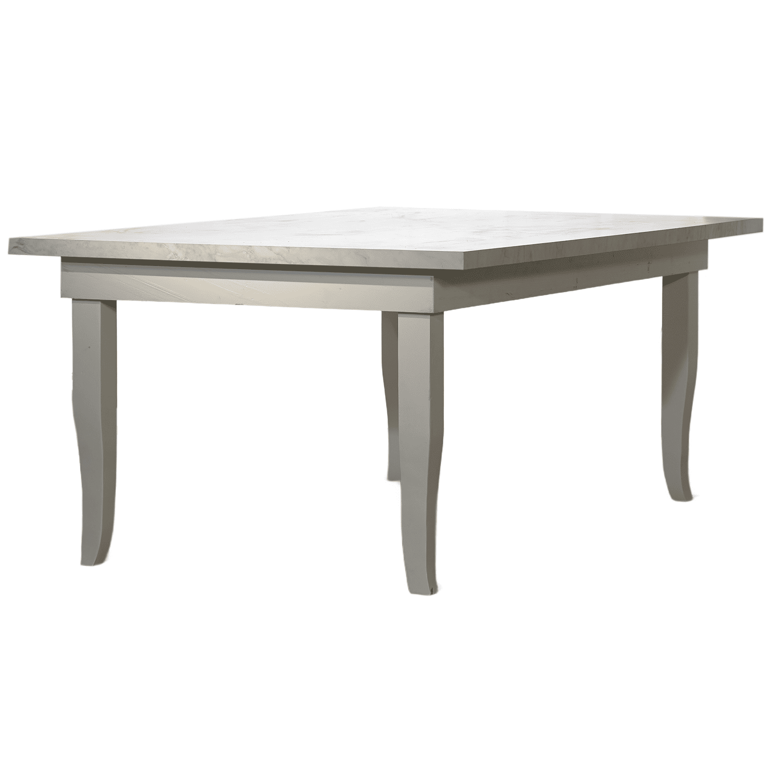 Tavolo con piano effetto marmo, dimensioni 200×120 cm. Adatto a eventi eleganti e allestimenti raffinati.